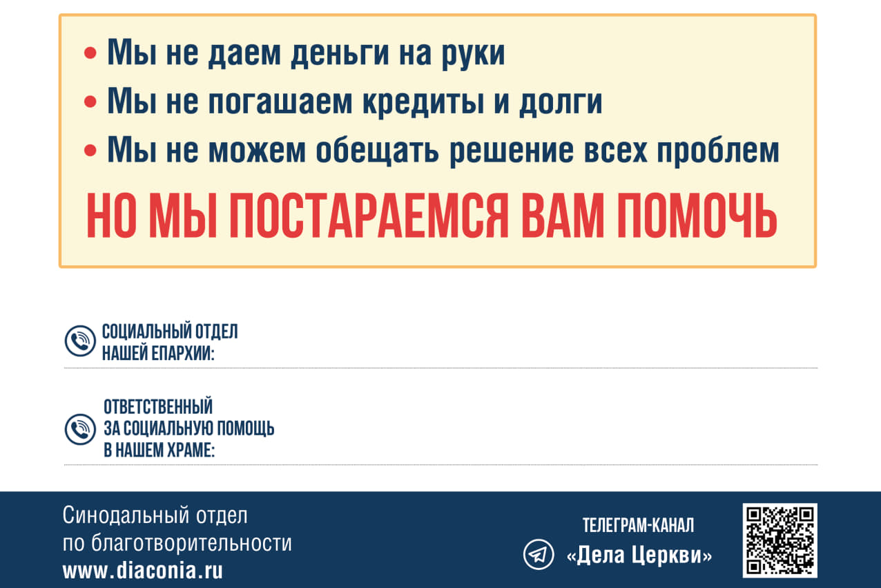 Запомните и передайте нуждающимся: телефон церковной помощи — 8-800-70-70-222.